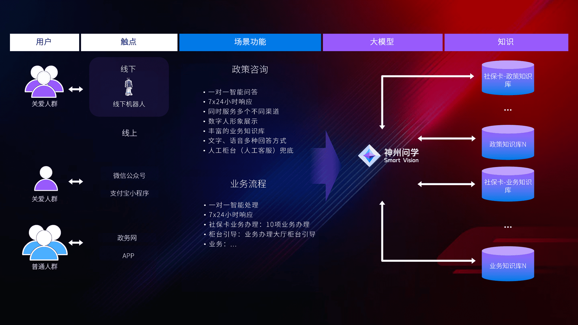 • 线上线下全覆盖:线上提供微信公众号、、、支付宝小程序、、政务网、、app多种渠道,,与线下机器人形成完整服务体系。。。。